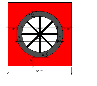 For the measurements, I have come up with several different dimensions. The easiest, I think, is a smaller version than I have made, using a 60"x60" red square, 42" black circle with 20" spokes, and a 20" white circle. This would leave 9" between the outside of the wheel and the edge of the square, an 11" band for the circle, and 9" runes (with and inch of black to spare on either side). Please do not forget to add a bit for seam allowance! Or be willing to loose a little of the dimensions, after sewing the seams. I did not sew all of mine...I used the handy invention Heat'nBond, which I ironed on to fuse the pieces of the wheel together. The problem with this is that it makes the bonded pieces stiffer, something to consider. Ours is still foldable, but again, it is stiffer.
